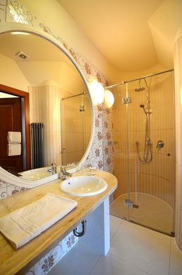 Wyposażenie pokoju: widok na góry, kanały satelitarne, telewizor z płaskim ekranem, internet Wi-Fi, stolik, krzesła, szafa, prysznic, toaleta, łazienka, ręczniki, pościel, łóżeczko turystyczne dla dziecka – na zapytanie, czajnik – na żądanie